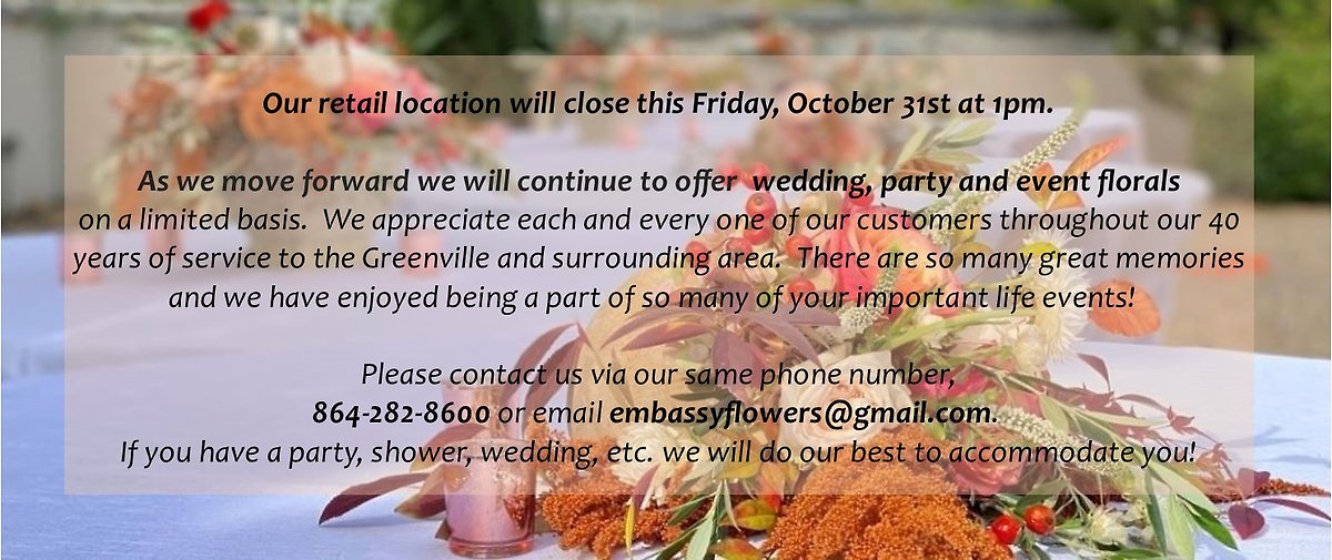 I ordered an arrangement from here for a friend who recently moved to the area. I am not from South Carolina, nor do I reside here.